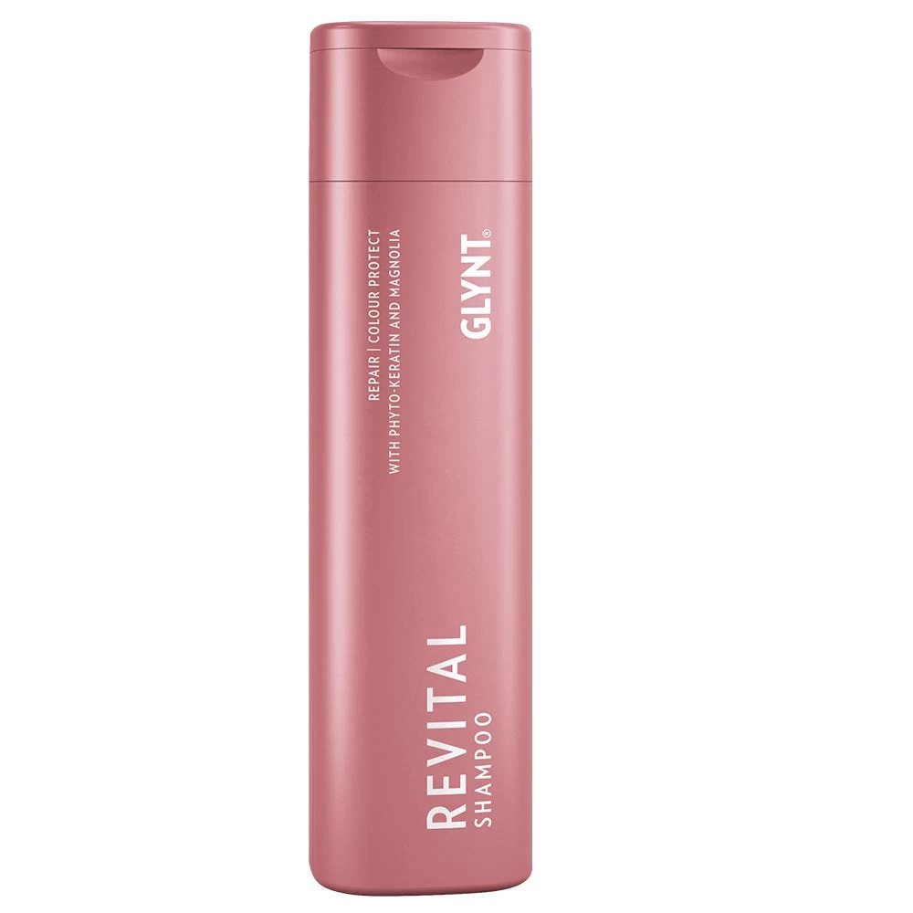 Das GLYNT REVITAL Shampoo mit Extrakten aus der Magnolie und mit Phyto-Keratin regeneriert sanft das Haar. Zur milden Reinigung von gesträhntem, gefärbtem, gewelltem oder sensiblem Haar. Verleiht seidigen Glanz und sehr gute Kämmbarkeit.