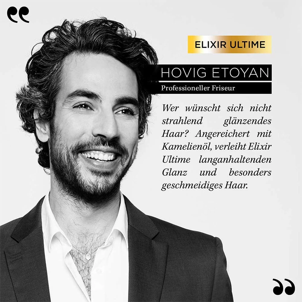 Je nach Haarlänge 2–4 Pumpstöße des Kérastase Elixir Ultime L’Huile Women’s Day auf die Längen und Spitzen in trockenem oder handtuchtrockenem Haar auftragen. Nicht ausspülen und wie gewohnt stylen.