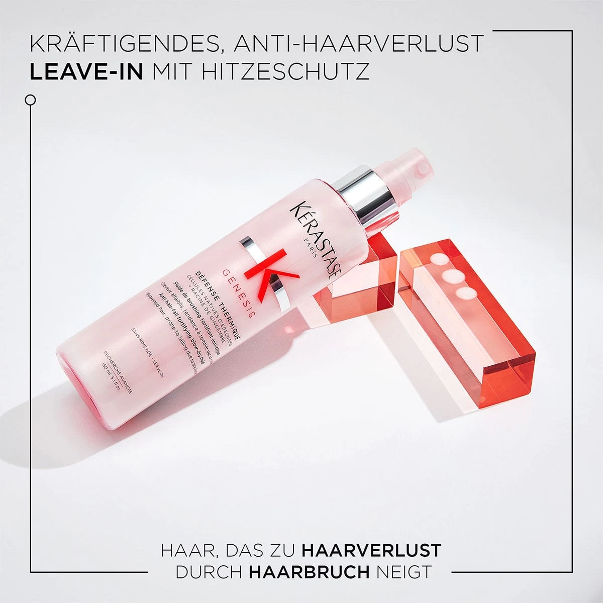 Das Kérastase Genesis Défense Thermique ist ein kräftigendes, Anti-Haarverlust (Haarausfall) Leave-In mit Hitzeschutz. Es kräftigt das Haar und versorgt es intensiv mit Feuchtigkeit, ohne zu Beschweren. Es schützt das Haar vor Hitze und hat eine Anti-Frizz Wirkung.