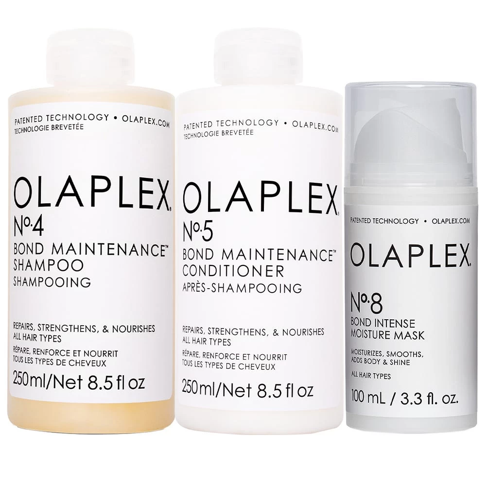 Das Olaplex Bundle No. 4 + No. 5 + No. 8 stärkt das Haar von innen und spendet intensive Feuchtigkeit, repariert zusätzlich und beugt Frizz vor. Das Bundle besteht aus einem Olaplex No. 4 Bond Maintenance Shampoo 250 ml, einem Olaplex No. 5 Bond Maintenance Conditioner 250 ml und einer Olaplex No. 8 Bond Intense Moisture Mask 100 ml.
