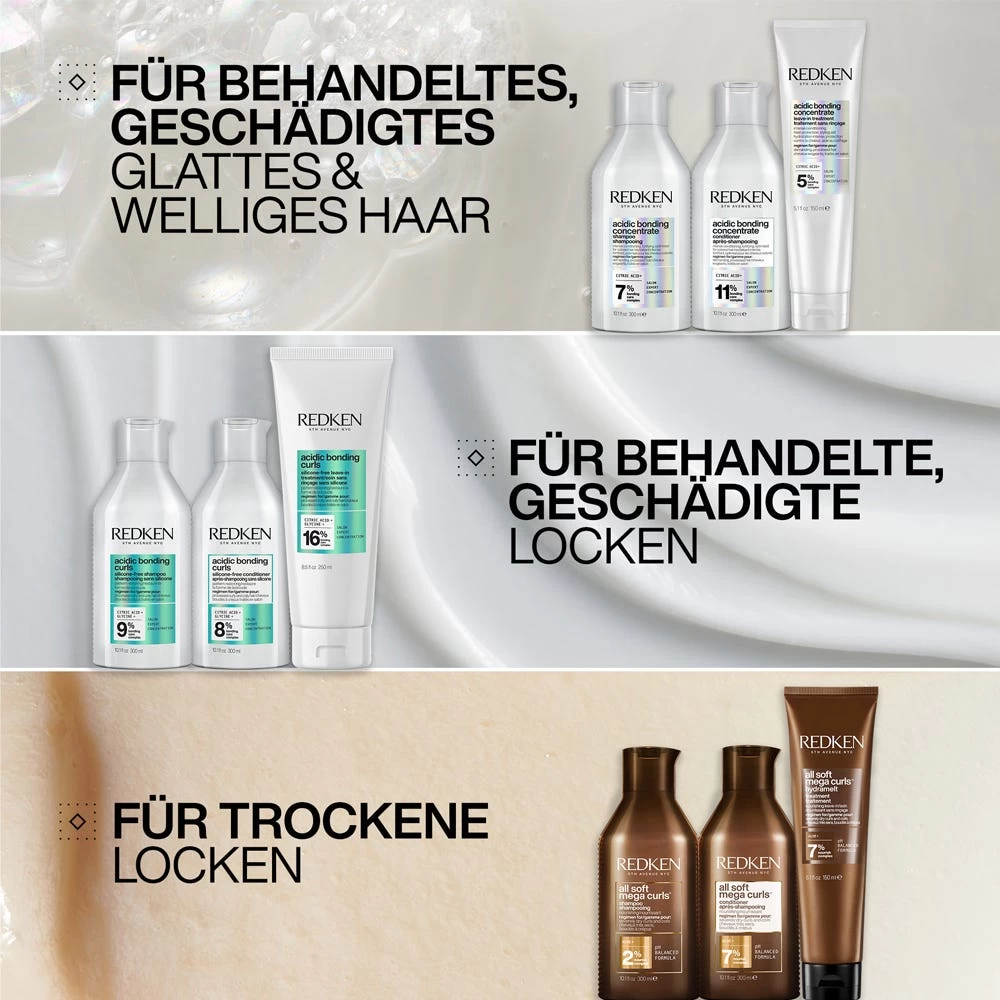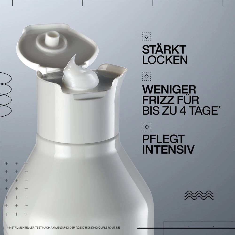 Der Redken Acidic Bonding Curls Conditioner ist ein silikonfreier Conditioner zur Regeneration der Struktur von behandelten, geschädigten Locken. Die ph-Wert ausgleichende und mit Zitronensäure und Glycin angereichert Formel ist perfekt auf lockiges Haar abgestimmt und sorgt für somit für einen tiefenwirksamen und sofortigen Regenerationseffekt. Zusätzlich stärkt der enthaltene Bonding-Care Komplex geschwächte Brückenbindungen innerhalb der Haarfaser und stellt somit eine gesunde Lockenstruktur wieder her. Für gesündere, mit Feuchtigkeit versorgte und definierte Locken nach nur 1 Anwendung.