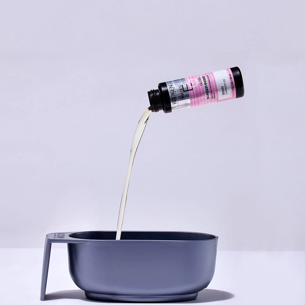 Mische Redken Shades EQ Bonder Inside im Verhältnis von 1:1 nur mit Shades EQ Processing Solution. Die Einwirkzeit beträgt 20 Minuten. Für bis zu 70% Grauhaarabdeckung verlängert sich die Einwirkzeit auf bis zu 40 Minuten. Shades EQ Gloss Crystal Clear kann mit jedem Farbton gemischt werden, um den Ton der Formel zu verringern oder aufzuhellen.