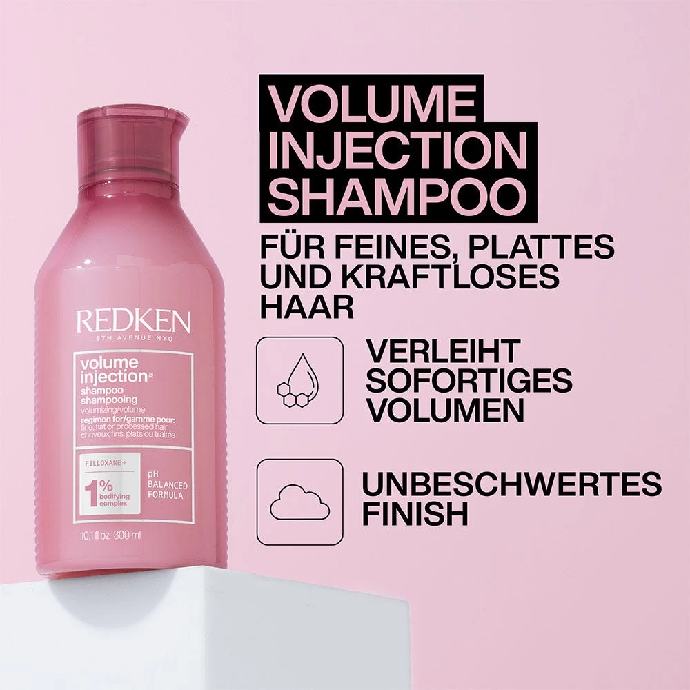 Das Redken Volume Injection Shampoo unterstützt glamouröses Volumen das andere in den Schatten stellt.