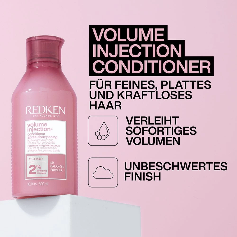 Der Redken Volume Injection Conditioner unterstützt glamouröses Volumen das andere in den Schatten stellt.