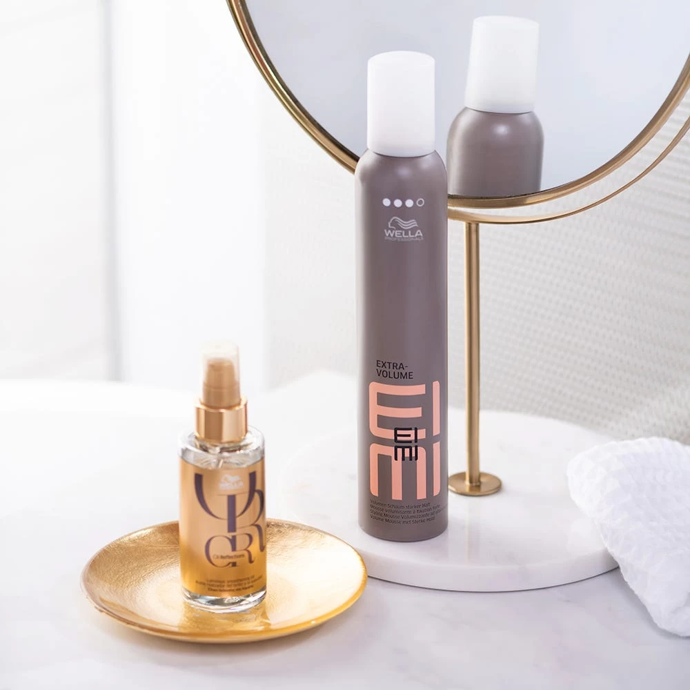Föhnen Sie großartiges Volumen ins Haar für eine perfekte Frisur mit starkem Halt. Der Volumen Schaum Wella EIMI Extra Volume hilft, das Haar beim Föhnen vor dem Austrocknen zu schützen. Mit Haltegrad 3 von 4. Nachfolger des Wella Wet Extra Volume Strong Styling Mousse. Jetzt mit neuer Rezeptur und verbesserter Konsistenz.