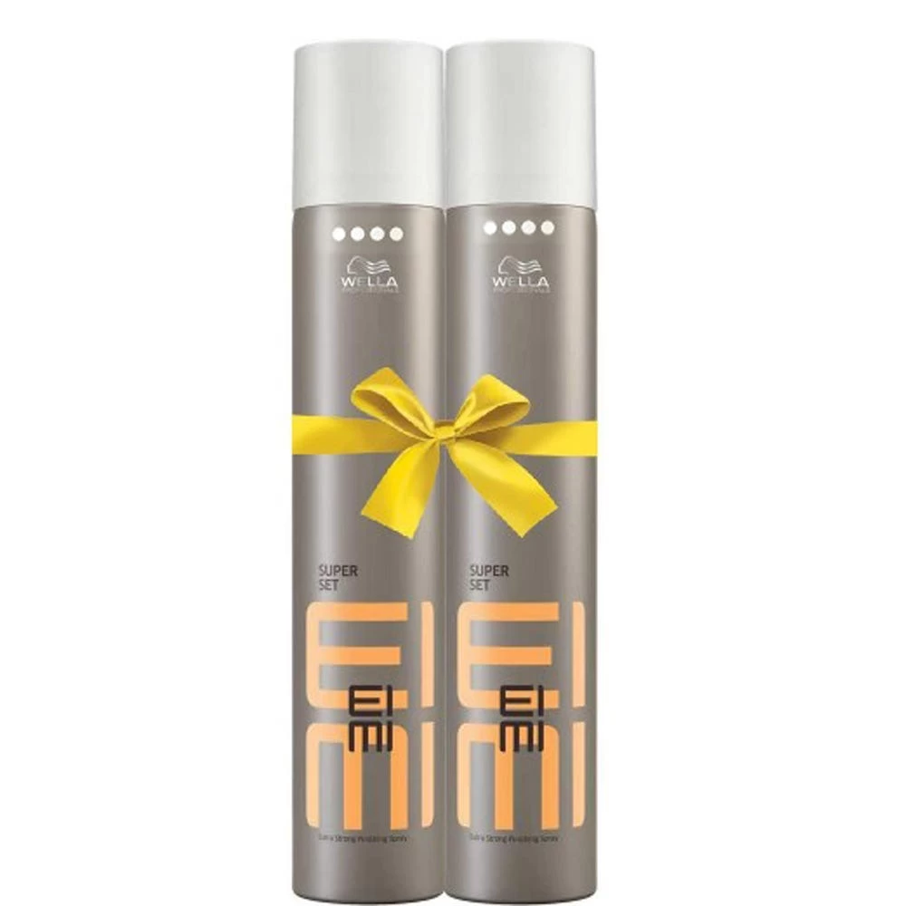 Das Wella EIMI Super Set 2 Stück ist ein Geschenkset für besonders starken Halt. Das Wella EIMI Super Set 2 Stück besteht aus 2 x Wella EIMI Super Set 500 ml.