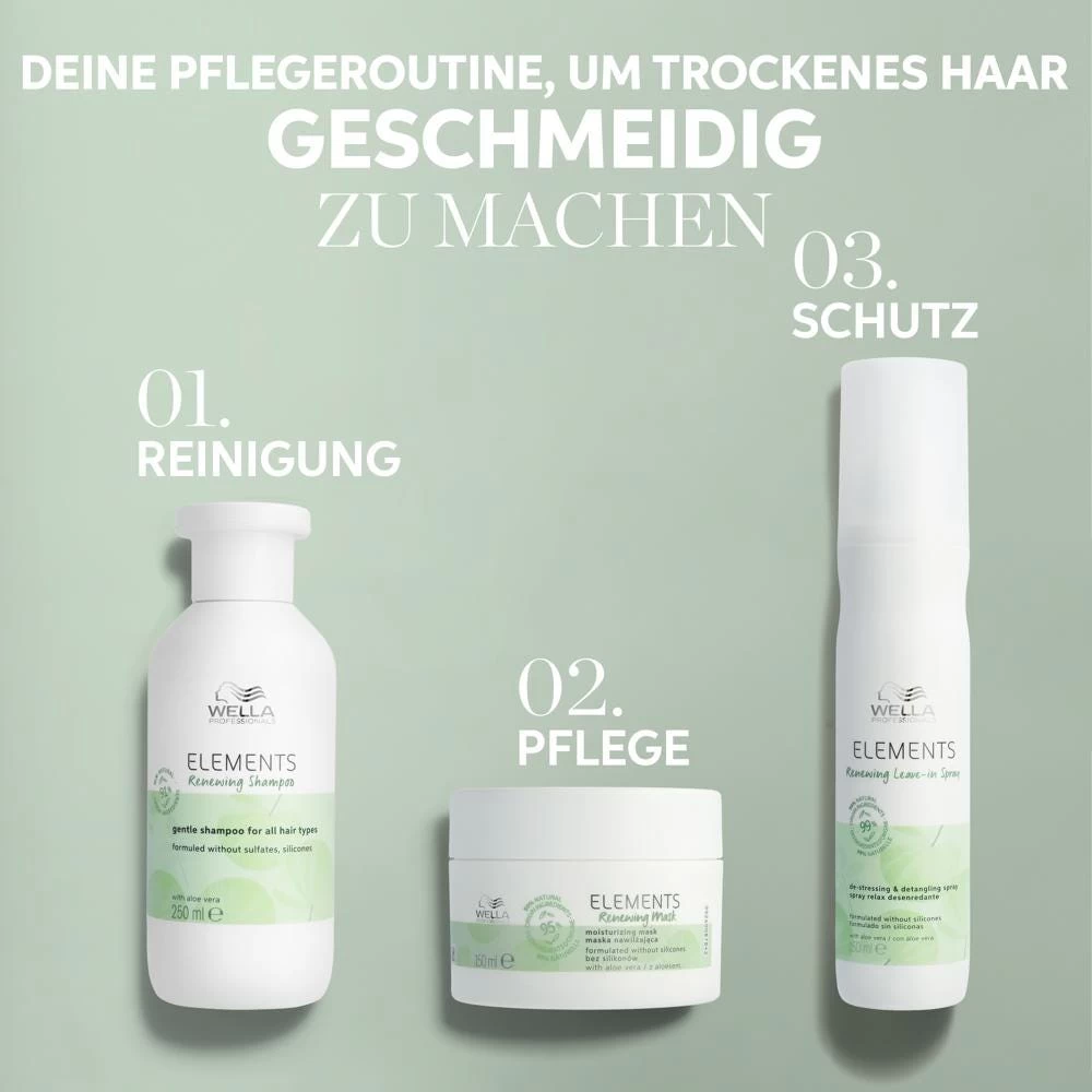 Elements ist die sanfteste Haarpflegelinie von Wella Professionals für ein Gefühl von gesundem Haar und Kopfhaut. Fühlen Sie den sanften Unterschied mit unseren pflegenden und hochleistungsfähigen Rezepturen mit bis zu 99 % Inhaltsstoffen natürlichen Ursprungs, frei von Inhaltsstoffen tierischen Ursprungs und formuliert ohne Silikone und Sulfate.