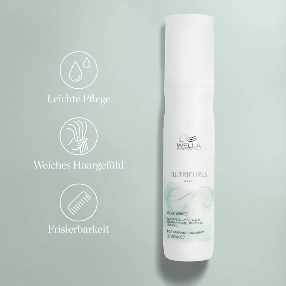 Das Wella Professionals Care Nutricurls Milky Waves sorgt für eine sanfte Pflege bei lockigem und welligem Haar. Es entwirrt die Haare und verleiht mehr Definition und Kontrolle über das Haar. Somit wird es leichter formbar und bietet verführerische Locken-styles.